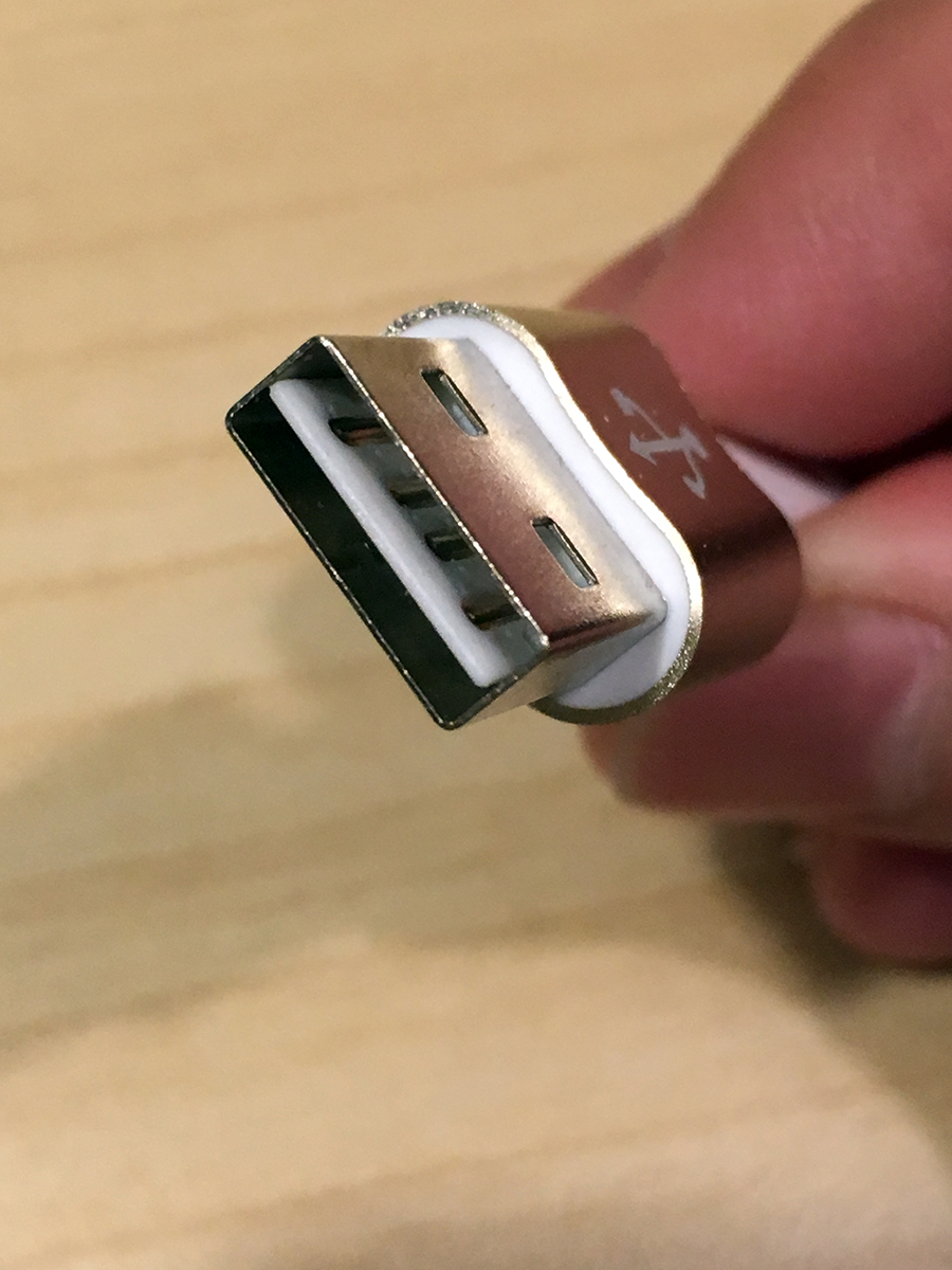 これ少し難点があります。先にお伝えしますが、ここの製品だけではありません。このリバーシブルタイプのUSBは便利な反面、挿したときの感触が鈍く、抜き差しが多いと破損しやすいデメリットを持っています。でも便利なんですよね。使い始めて3ヶ月ほど経ちますが何の問題もなく使えてるので、この商品自体の作りはしっかりしてそうです。